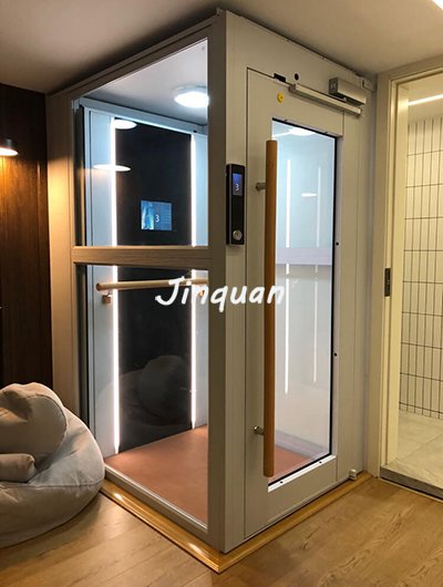 依靠液壓驅動的電梯,是通過液壓動力源,把油壓入油缸使柱塞作直線運動,直接或通過鋼絲繩間接地使轎廂運動的電梯。液壓電梯是機、電、電子、液壓一體化的產品,由下列相對獨立但又相互聯系配合的系統組成。泵站系統、液壓系統、導向系統、轎廂、門系統、電器控制系統、安全保護系統。液壓別墅電梯一般為手動開門。