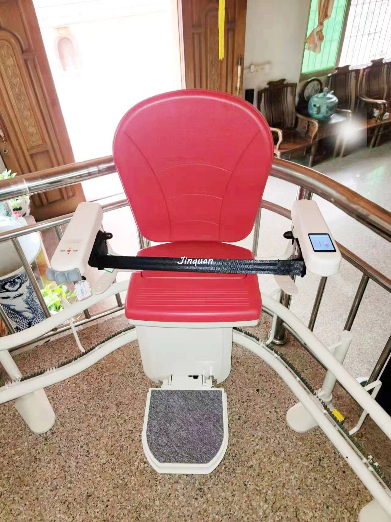 在歐美一些地區的房屋設計一般在內部結構上有階梯,但很多房屋沒有安裝電梯的空間。為了讓移動不便的人能輕松上樓,我們推出了可以安裝在樓梯上的電梯。座椅電梯是安裝在樓梯側運行的簡易電梯。主要作用是幫助腿和行動不便的人上樓。座椅電梯的結構一般由軌道、驅動裝置和座位三部分組成,驅動裝置和座位安裝在一起,因此外觀上看起來像在軌道上運行的椅子。人們認為只有老人才需要使用這樣的座椅電梯,其實這個想法具有片面性。現在社會上有很多人有脊髓病、關節炎、其他骨骼病等引起的行動障礙,醫生建議使用座椅電梯上樓梯以減少對身體的傷害。坐座椅電梯很方便,放下座位坐下,按扶手上的按鈕,座位就開始移動了。工作緩慢順暢,非常順暢。把手從按鈕上拿開,座椅馬上停止運轉。再按一次按鈕就可以繼續走了。另外安全性也有保障。人坐在椅子上用安全帶保護著。避免掉下去。座位遇到障礙物時自動停止,即使行駛途中停電也不用擔心會影響安全。驅動電源是可反復充電的電池,足以把客戶送到安全的地面。曲線座椅電梯曲線型座椅電梯很難下別墅、舊辦公室等樓梯。優雅的設計,多種顏色的選項,產品和你家的裝修風格一體化,多種風格的選項更節約你的空間,更方便使用。直線型座椅電梯只要安裝在一個直線樓梯上,就可以使用直線型座椅電梯,可以更經濟,生活更簡單,更開心。單軌座椅電梯,簡單的大氣外觀設計,全面溫柔的細節處理只是為了追求完美,選擇折疊式軌道,簡單解決房間布局和安裝位置的沖突,生活方便。座椅電梯是用復式建筑、別墅、舊建筑改造解決老年人,行為不便的人下樓的好方案,真的讓你的生活變得更簡單,更快樂。